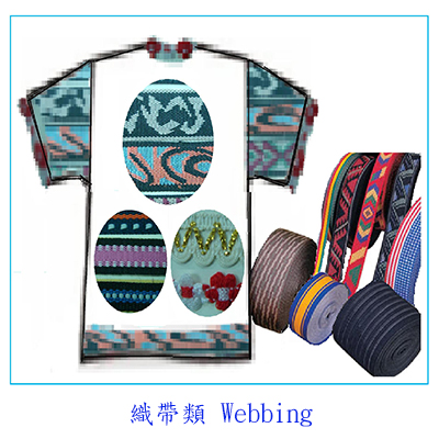 織帶、鞋帶、織帶製造、識別證帶、鬆緊帶、上腊鞋帶、補強帶、手提包用提帶、寵物帶